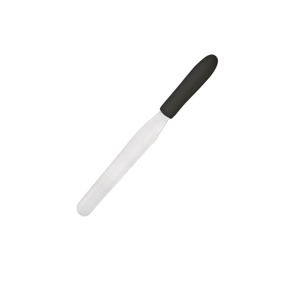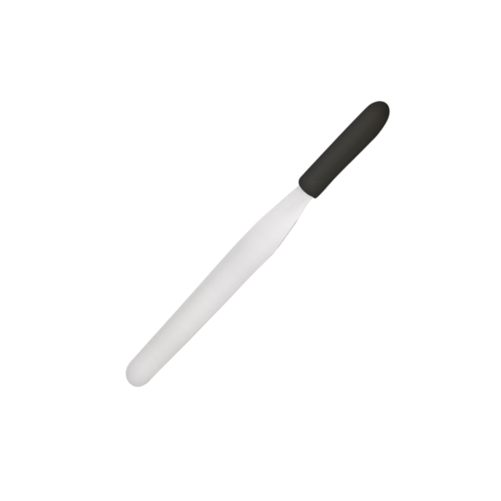 Designed with a flat, rounded blade, this item allows for smooth and even application of creamy toppings, while its high-quality stainless steel construction makes it exceptionally durable and long-lasting. With a durable, hard polypropylene handle and a ground stainless steel blade, this Stainless Steel Bakery Spatula allows for precise edging on frosted desserts. The polypropylene handle provides shock resistance and is easy-to-clean, making it a sanitary option for your kitchen.