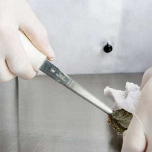 4" Stainless Steel Boston Style Oyster Knife with White Textured Poly Handle