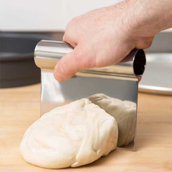 Designed to help simplify your food preparation process, this 5 1/4″ x 4 1/4″ Stainless Steel Dough Scraper from Winco is a must-have tool for your kitchen. It is also individually ground and hand honed to create a long-lasting, sharp edge. To reduce hand fatigue, this scraper has an integrated round handle that provides a comfortable grip, reducing hand fatigue from extended use. You can also use it to pick up chopped vegetables or diced meat and to transfer ingredients from the cutting board to a mixing bowl or pan.