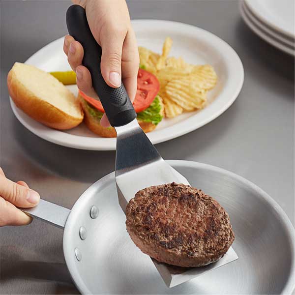 Easily flip your signature foods while serving superior food safety with this 5 1/8″ Blade Stainless Steel Offset Hamburger Turner. Featuring a heavy gauge stainless steel design that won’t corrode with time, this item is built for everyday use in high-volume consumer traffic environments. Use it to turn over meats in your sizzling skillet or to flip omelets and pancakes for your guests to enjoy without fear of cross-contamination.
