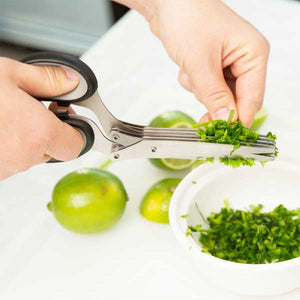 These 5-Blade Herb Shears with Blade Guard allow you to simply cut herbs directly over soups, salads, casseroles, and countless other culinary creations. Whether you are mincing, chopping, or cutting herbs, these shears are designed to save your time and energy in the kitchen.