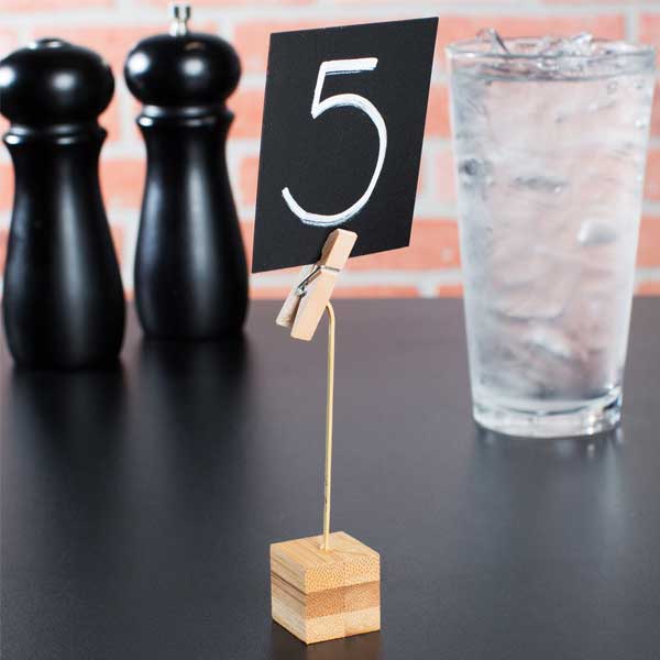 Offering style and capacity, this versatile cardholder is perfect for an assortment of uses. Make a unique tabletop or food introduction with this 5″ Clothespin Clip Square Bamboo Card Holder / Tablecraft! Including a 1″ square bamboo base, this exceptional card holder’s flimsy stem lifts names or table numbers for most extreme visibility. Its reduced style gives a basic and smooth look without overwhelming your food show.