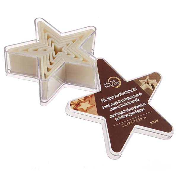 ‘- This 5 Pc. Star Plain Nylon Cutter Set has Beveled Cutting Edge For More Excellent Precision – One Piece Seamless Pattern For Superior Sanitation – Rounded Top Edge Provides