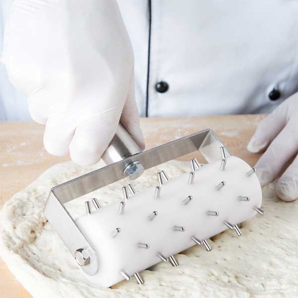 A must-have for bakeries, restaurants, and other food service facilities, the 5″ Wide Dough Docker – 3/8″ Stainless Steel Pins from Winco will help prevent dough from blistering and over