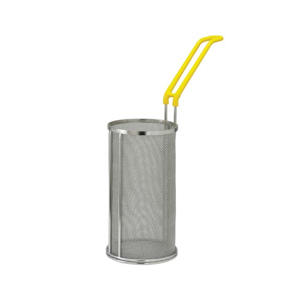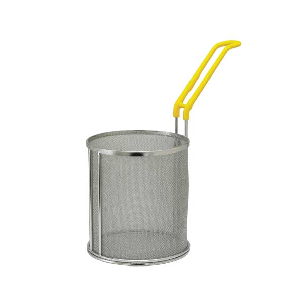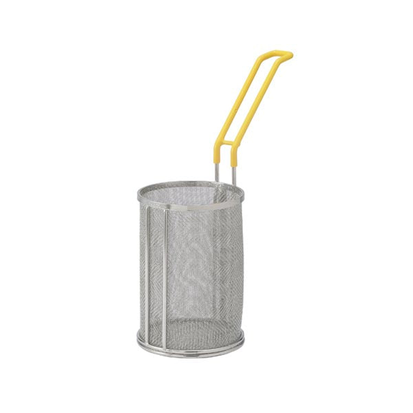 Excellent for your restaurant, cafeteria, or other commercial kitchens, this 5″ x 7″ ''5 x 9 '' ''6 1/2 x 7 Super Fine Mesh Pasta Basket from Winco with a flat bottom will make cooking your pasta dishes effortless. Its strong stainless steel construction and outer framework on the top wiring make this strainer remarkably sturdy so you can efficiently and easily strain noodles. The cylindrical design enables water to flow freely for even cooking and the ergonomic handle is comfortable and has an open end for hang drying.