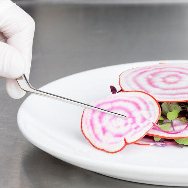 These 6 1/2″ Offset Precision / Plating Tongs are used for decorating pastries and main courses without cutting or breaking your smallest or most delicate ingredients. They’re ideal for precise plating applications, so you can add detail to any dish at your hotel, event, bakery, or upscale restaurant.