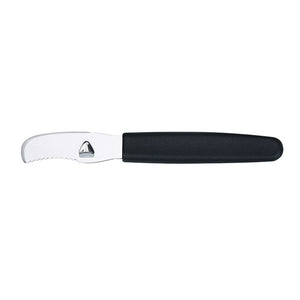This orange peeler is an indispensable addition to your back-of-house and front-of-house operations. Use this peeler to simply remove the skin of citrus fruits without grabbing the stem. Its slightly