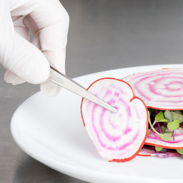 Use these 6 1/8″ Straight Precision / Plating Tongs for decorating pastries and main courses without cutting or breaking your smallest or most delicate ingredients. Created for detailed work, these