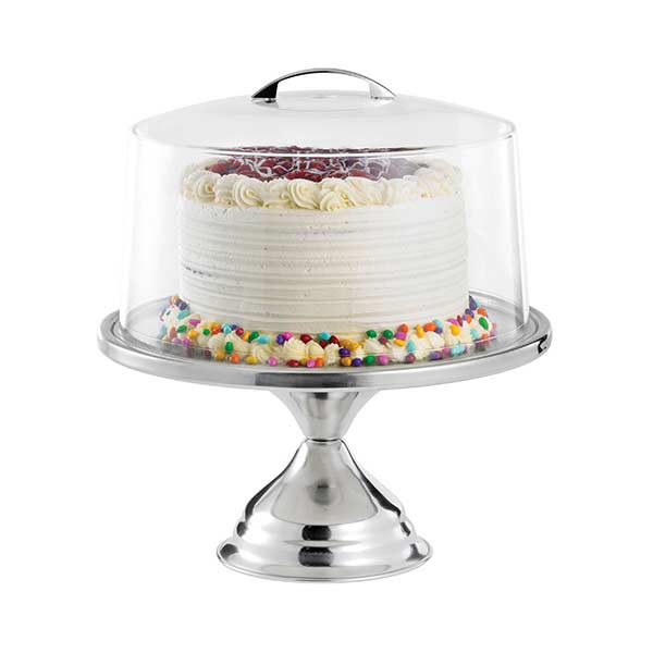 Show off the character and freshness of your playfully decorated cakes, pies, cupcakes, and muffins with this 6-3/4″ Stainless Steel Cake Stand. The eye-catching, non-revolving cake stand provides excellent product visibility and is perfect for diners, bakeries, family restaurants, or any location that sells baked goods.