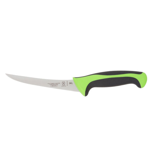 This 6″ Curved Stiff Boning Knife is excellent for delis, grocery stores, butcher shops, and other operations that handle raw meat, this solid tool your workers will love to use. Its black handle offers the ergonomic comfort that most knives only try to deliver. For the most excellent paring knife, the hard-working chef knife, or a set of stylish and functional steak knives, we offer quality handcrafted collections.
