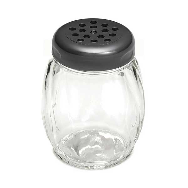 Perfect for use at your pizzeria, restaurant, or catered event, this 6 Ounce Swirl Glass Shaker with Plastic Top has a 6 oz. capacity that makes it ideal for tabletop use. This shaker owns a classic swirl design that is perfect for cafes. Use this shaker to give cheese to your guests or try it with oregano, red pepper flakes, and other coarse spices to give your table a glowing array of spices.