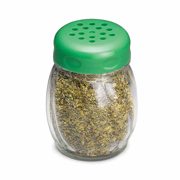 Perfect for use at your pizzeria, restaurant, or catered event, this 6 Ounce Swirl Glass Shaker with Plastic Top/Green has a 6 oz. capacity that makes it ideal for tabletop use. This shaker owns a classic swirl design that is perfect for cafes. Use this shaker to give cheese to your guests or try it with oregano, red pepper flakes, and other coarse spices to give your table a glowing array of spices.