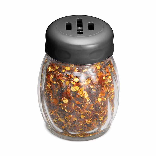 Offer easy dispensing of sugar, spices, herbs, sprinkles, and grated cheese, with this 6 Oz Swirl Glass Shaker with Black Slotted Top! This shaker top is created specifically for use with most 6 oz. shakers. The color-coded plastic makes it easy to distinguish contents in your kitchen, while a long-lasting plastic construction prevents rust and corrosion, for increased product life.