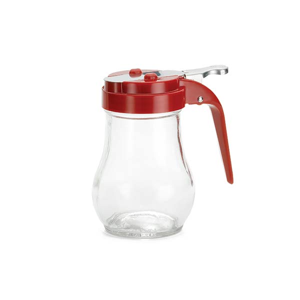 6 Oz Teardrop Glass Dispenser, Red Top / Tablecraft
