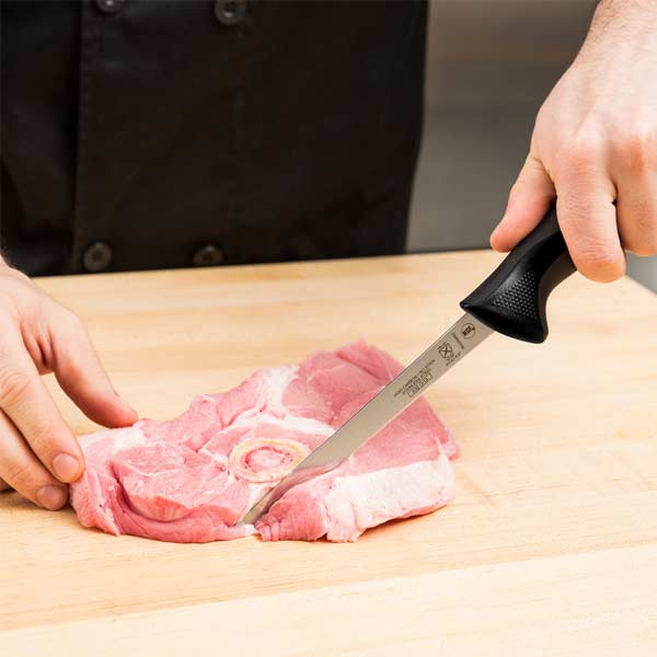 Excellent for delis, grocery stores, butcher shops, and other operations that handle raw meat, this Mercer boning knife is a great, solid tool your workers will love to use. Its black handle offers the ergonomic comfort that most knives only try to deliver. For the most excellent paring knife, the hard-working chef knife, or a set of stylish and functional steak knives, we offer quality handcrafted collections.