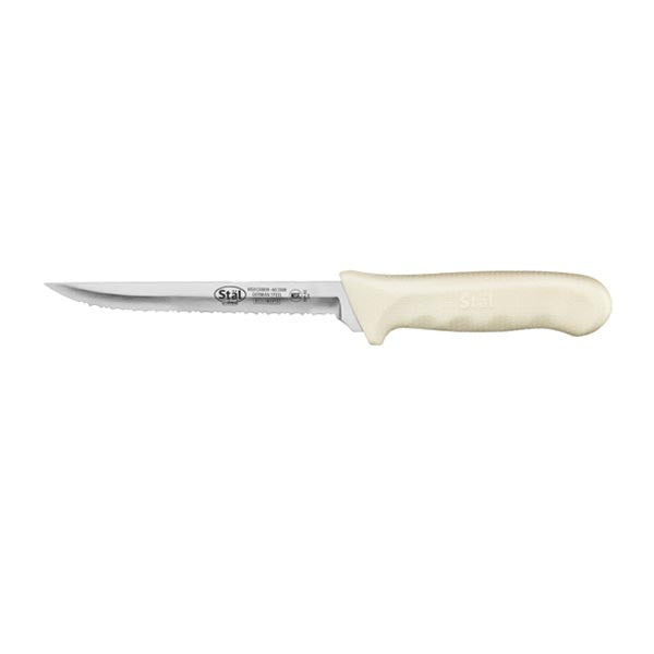 This utility knife is created for maximum cutting performance and produces sharp, unparalleled cuts each time. Long-lasting, light, and affordable, this Winco 6″ Stain Free Utility Knife with White Polypropylene