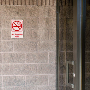 Make it remembered that smoking is not permitted, with this Tablecraft Sign. This 6″ x 9″ sign is printed with “No Smoking Area Available” in bright red font. For easy mounting, this sign comes with pressure-sensitive adhesive on the back of the sign. With this sign, there will be no confusion as to where smoking is or is not allowed.