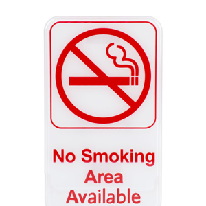 Make it remembered that smoking is not permitted, with this Tablecraft Sign. This 6″ x 9″ sign is printed with “No Smoking Area Available” in bright red font. For easy
