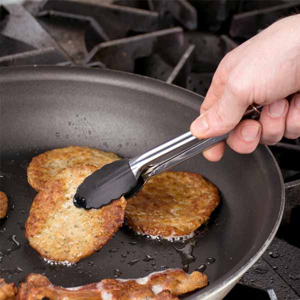 These 7-1/8″ Cash & Carry Mini Tongs combine the convenience of heat-resistant silicone tips with the durability and longevity of strong, stainless steel construction. Each set of tongs is heat