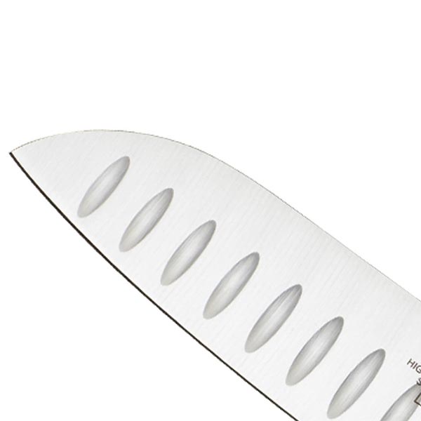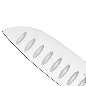 Use this 7″ Granton Edge Santoku Knife with Red Handle to slice, dice, mince, or chop anything from fruits and vegetables to meats and poultry. This makes it ideal for use at your restaurant, event, bistro, or cafe. It is made of high-carbon, stain-free German steel blade and features a razor-sharp edge capable of cutting through bread and fruit with ease.