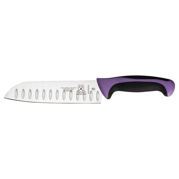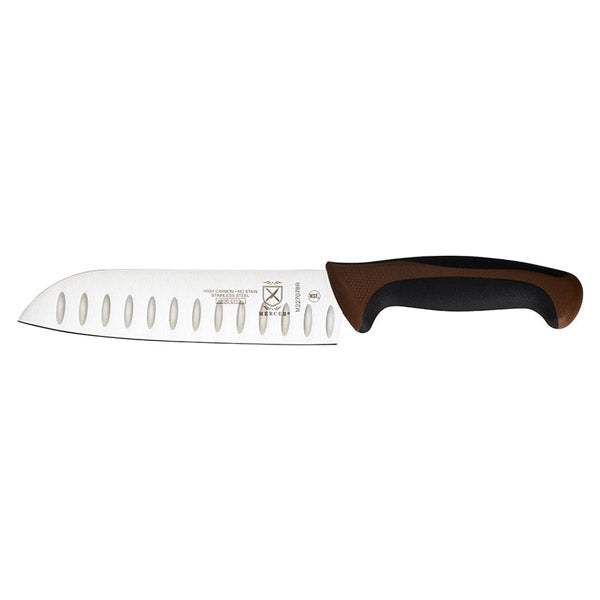 7" Granton Edge Santoku Knife with Red Handle / Mercer