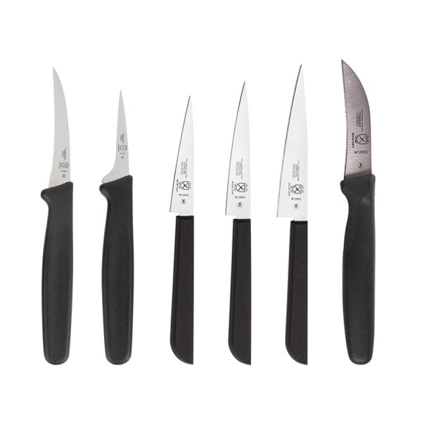 Each knife in this 7-Piece Plating / Carving Knife Set was specifically selected to provide you with the perfect, well-rounded carving set for your kitchen. Each knife in this set highlights a textured polypropylene handle to ensure a safe grip. This is especially important while carving fruits and vegetables for elegant plating work.