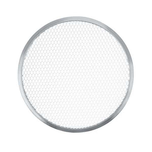 This pizza screen is conveniently created to allow hot air to circulate underneath the crust and will bake pizzas quickly and evenly. This useful pizza screen will help reduce the baking time and increase the efficiency of your foodservice establishment. Featuring aluminum construction, this pizza screen is exceptionally strong to keep up with the high demands of daily use.
