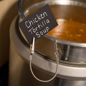 Whether you run a busy buffet line or a quiet coffee shop, adding good, eye-catching signage to your products can mean the difference between a clear presentation and one that will entice customers to try your culinary creations. This double-sided alligator clip cardholder provides you the flexibility to create the display you want and to change it easily if the need arises. Use it to label soups, casseroles, pastries, and desserts. List allergy information and ingredients for your patrons.