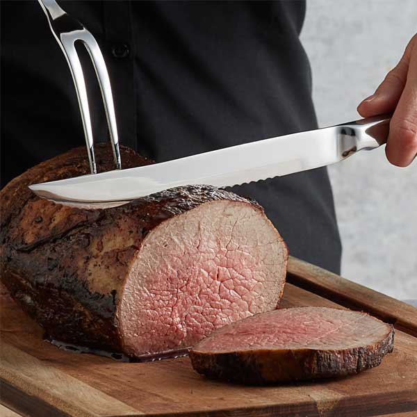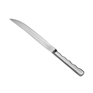 Highlighting dependable stainless steel construction, this utensil is designed for frequent use in high-volume consumer traffic facilities. While its hollow handle offers finger grips for a more comfortable hold, its 8″ blade length is built strong to help you create smooth, precise cuts. Also, it boasts a sturdy serrated edge for slicing through tougher menu items. It is a must-have addition to any busy buffet, catering event, or large commercial kitchen.