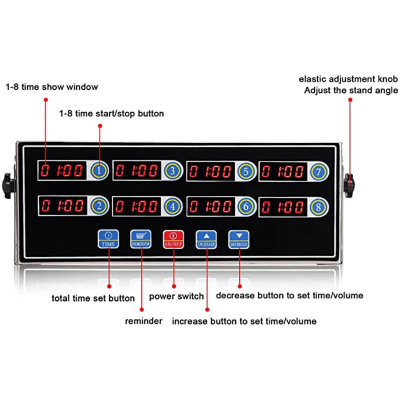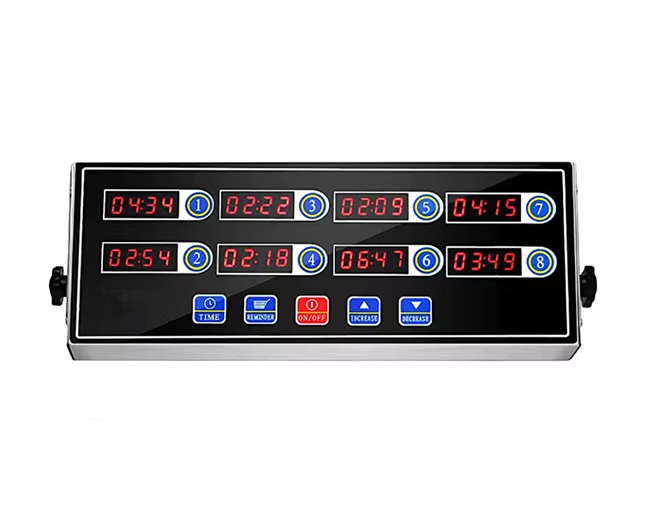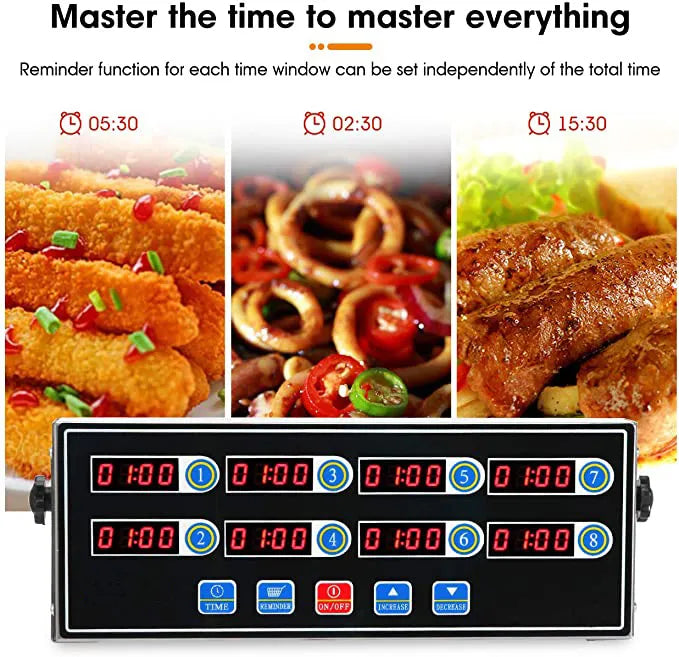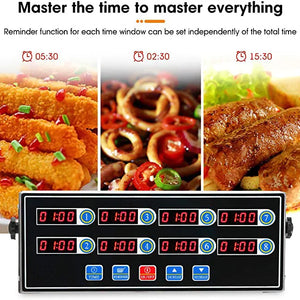 8 Channels Commercial Kitchen Timer Digital Alarm Reminder with Clear LED Display in Stainless Steel