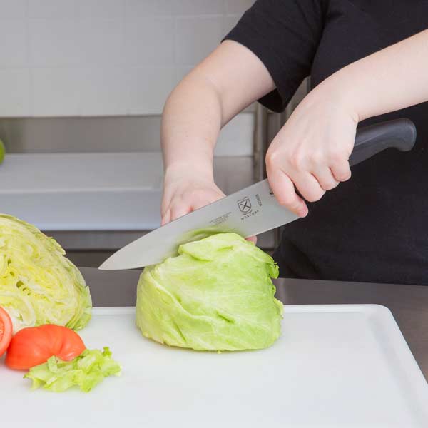 This 8″ chef knife is sure to enhance your commercial kitchen and is guaranteed to last. This knife’s high carbon, stain-free Japanese steel blade effortlessly rips through a variety of foods in your commercial kitchen. It features a sharp edge, which is outlined to cut through bread without crushing or splitting.
