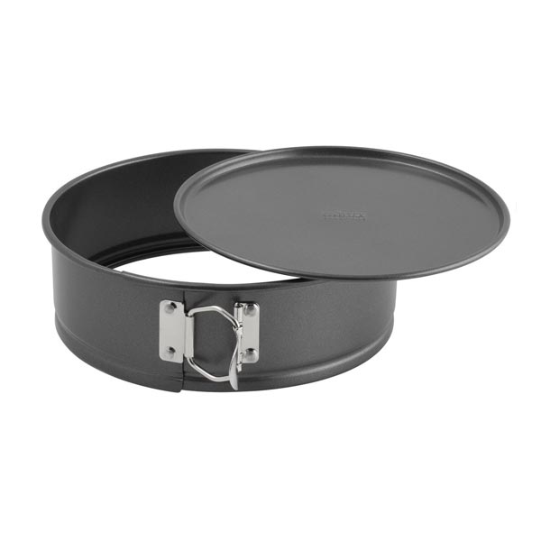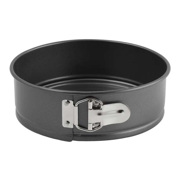 Excellent for even the most delicate cakes, this 8″ Heavy Duty Non-Stick Springform Pan guarantees that desserts are smooth and pristine after removal. It highlights a traditional springform design, which includes adjustable sides and a removable bottom to gently separate the cake from the pan without any damage. Made from heavy-duty 24 gauge aluminized steel, this cake pan features a latching system that seals the batter while heat is distributed across the surface for uniform baking.