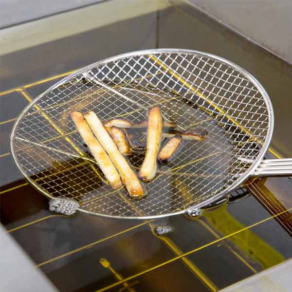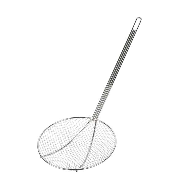 Carefully and effectively remove items from stockpots, steamers, and fryers with this 8″ round mesh skimmer. This skimmer highlights a strong wire mesh bowl and long, nickel-plated, one-piece handle. Use it to exclude particles from your fryer, as well as lost french fries, chicken fingers, mozzarella sticks, and corn nuggets. Use it when cooking donuts, poached eggs, and dumplings. With this skimmer, your options are endless.