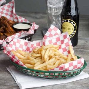 Perfect for any casual dining establishment, this 9 1/2″ Green Premium Oval Fast Food Basket is a unique alternative to traditional plates. From sports bars and family-style restaurants to pool cabanas and another outdoor dining, it complements any inviting and fun atmosphere. Also, its lightweight design, transporting full meals is easier than ever. You can simply add deli sandwich wrap paper to the bottom of the basket to intensify your food presentation and catch any grease or crumbs before they make their way onto tables, counters, or floors.