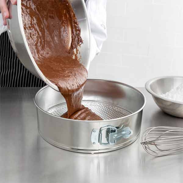 Perfect for cheesecakes, layered cakes, or streusel-topped cakes, this 9 1/2″ Light Tin Springform Cake Pan from Winco is a versatile and essential tool for both home and commercial use.