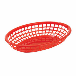 Perfect for any casual dining establishment, this 9 1/2″ Red Premium Oval Fast Food Basket is a unique alternative to traditional plates. From sports bars and family-style restaurants to pool cabanas and another outdoor dining, it complements any inviting and fun atmosphere. Also, its lightweight design, transporting full meals is easier than ever. You can simply add deli sandwich wrap paper to the bottom of the basket to intensify your food presentation and catch any grease or crumbs before they make their way onto tables, counters, or floors.
