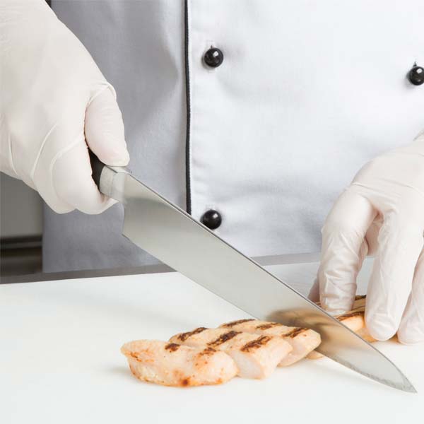 Our selection of kitchen knives includes choices for nearly any foodservice business. This knife smoothly slices through boneless protein or vegetables with ease and is created with superior quality. The blade guarantees that slices can be completed without sawing, while the short height of the blade produces less friction when slicing.