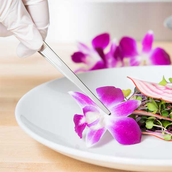 Use these 9 3/8″ Straight Precision / Plating Tongs for decorating pastries and main courses without cutting or breaking your smallest or most delicate ingredients. Created for detailed work, these