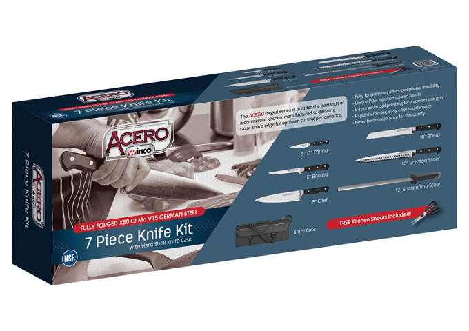Our Acero forged series offers exceptional commercial quality at never-before-seen prices.Made of X50 Cr MoV15 German steel & Unique POM injection molded handles help to achieve balanced weight distribution for ease of useKnives included are NSF listed
