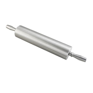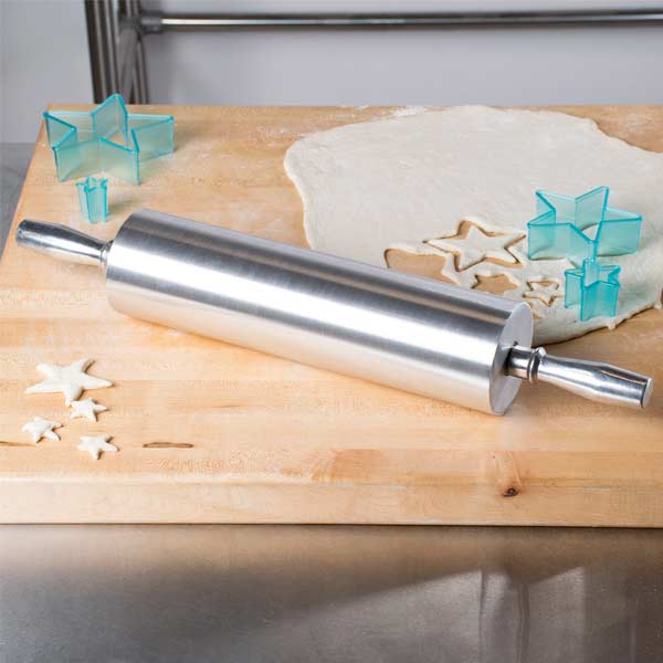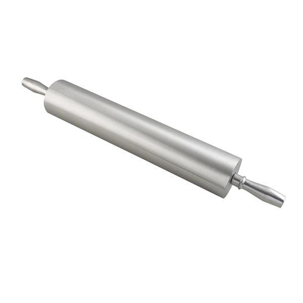 Highlighting heavy-duty aluminum construction, this 13″ Rolling Pin can endure repeated use. It applies easily on ball bearings for a smooth, fluid motion, and thanks to its two contoured handles, it provides your staff with a comfortable, firm grip for precise performance. It is easy to clean and will endure the demands of high volume cooking. To reduce sticking, place this rolling pin in the freezer before use so it stays cool when working on the dough. When compared to a wooden rolling pin, this aluminum material is less likely to stick to the dough, minimizing the amount of flour used when rolling.