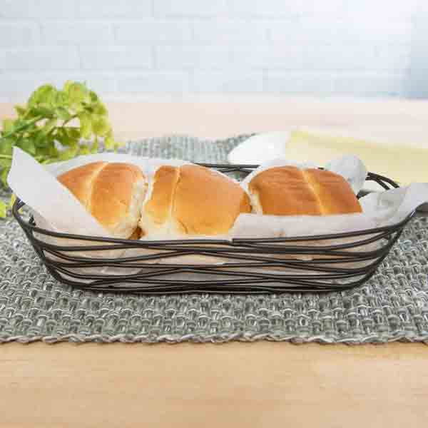 From the Artisan assortment, the Artisan Oblong Black Wire Basket – 9″ x 4″ x 2″ / Tablecraft is powder-covered for a sturdy completion and smooth design. From the Buffet-style