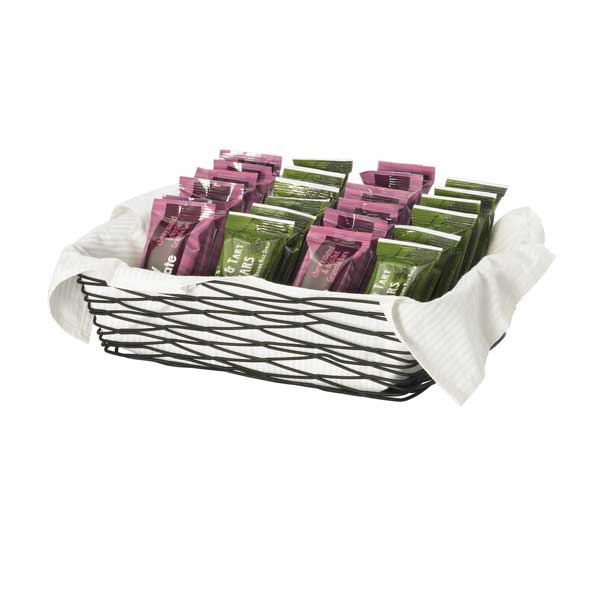 From the Artisan assortment, the Rectangular Black Wire Basket – 12″ x 9″ x 3 1/2″ / Tablecraft is powder-covered for a sturdy completion and smooth design. From the Buffet-style