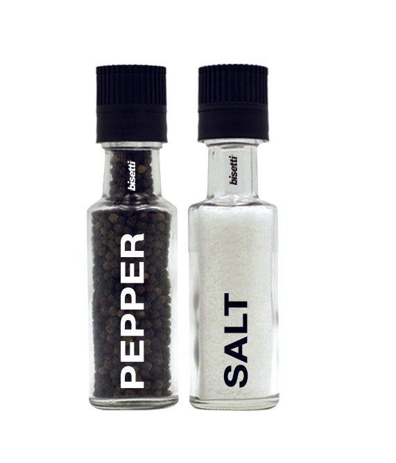 Bisetti Pantelleria is the most fashionable bottle-shaped mill in transparent silk-screened glass.The cap of the bottle conceals the grinder, and is in turn equipped with a freshness-saving cap, which preserves the contents from both air and dust.To grind, remove the freshness cap, turn the grinder upside down, turn clockwise.Clean with a soft, dry cloth.