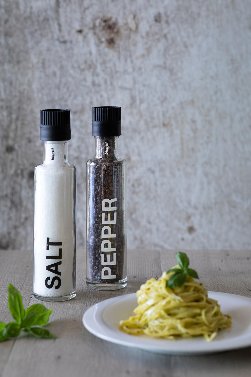 Bisetti Pantelleria is the most fashionable bottle-shaped mill in transparent silk-screened glass.The cap of the bottle conceals the grinder, and is in turn equipped with a freshness-saving cap, which preserves