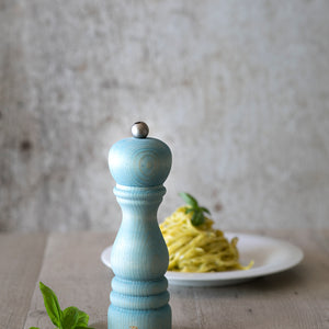 Bisetti Vintage 7" Light Blue Fir-Wood Salt And Pepper Mill "Shabby"