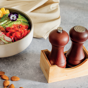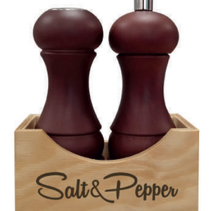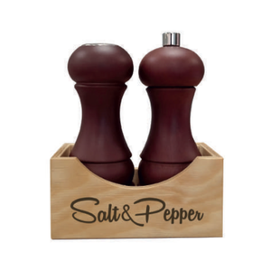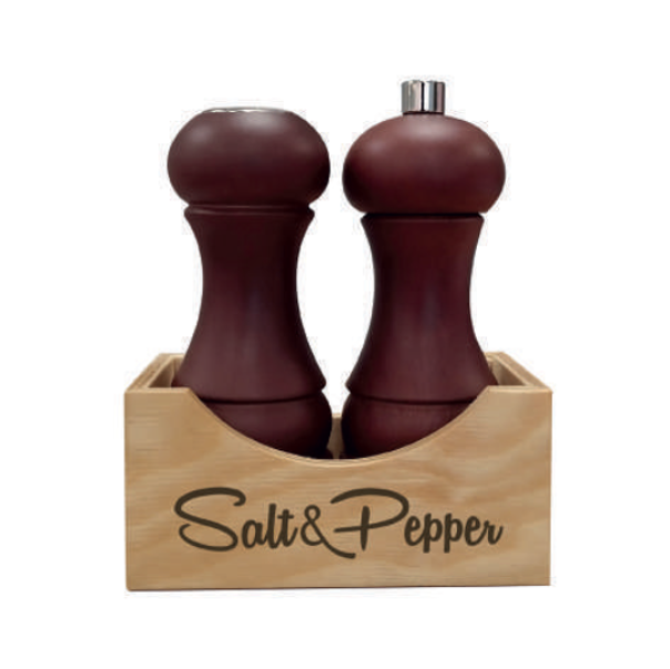 Bisetti Walnut Stain Pepper Mill And Salt Shaker Set With Laser Etched Birch Wood - 145 mm