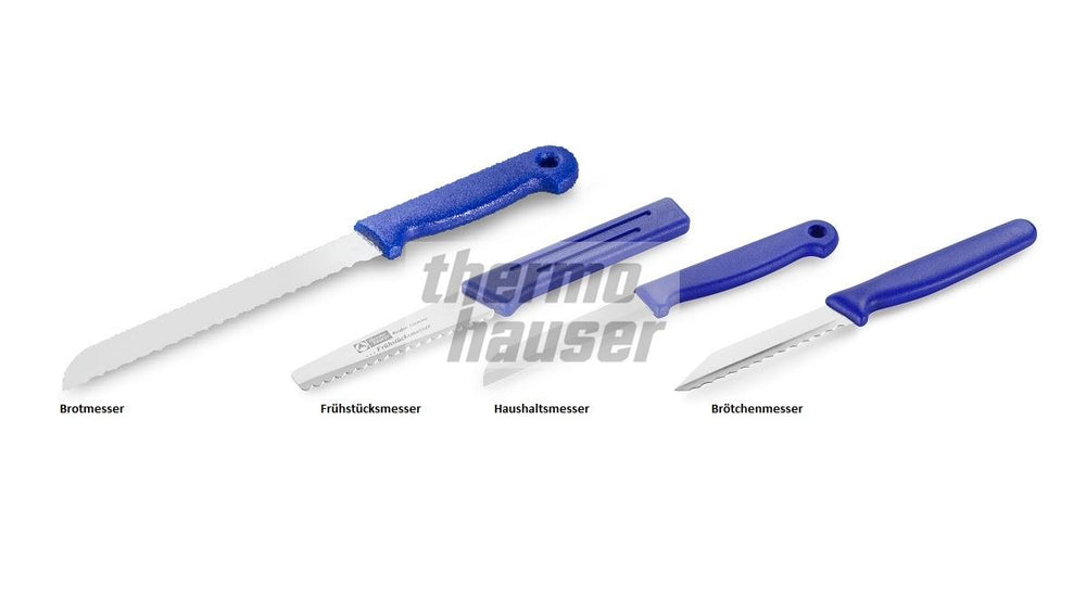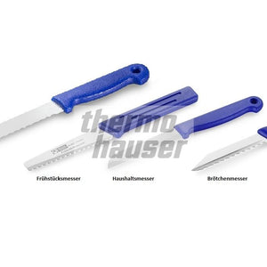 In addition to versatile all-purpose knives, every well-stocked kitchen should also have specialty knives. At thermohauser, you'll also find high-quality bread and breakfast knives, which, like the household knife, feature a stainless steel blade and a blue plastic handle.