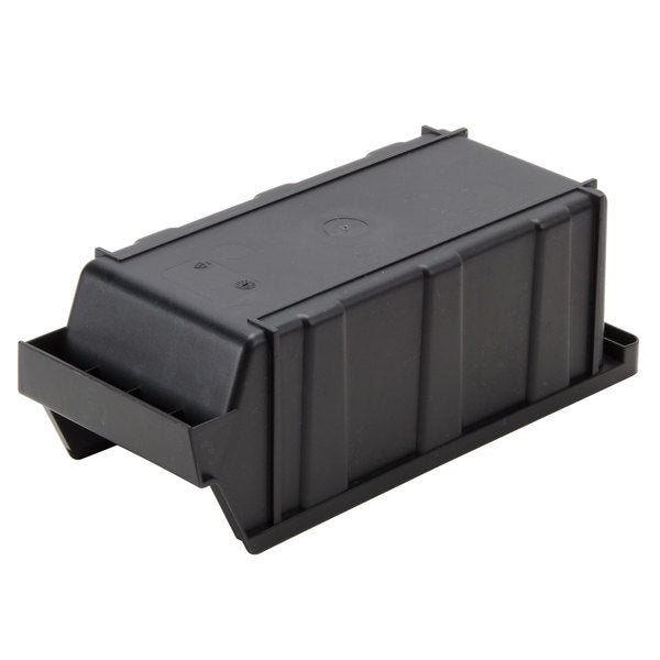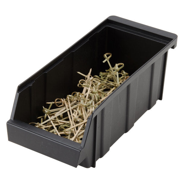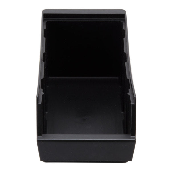 Use this Cambro 5412CBP110 black Versa organizer bin to store non-perishable condiments, disposable ware, and napkins in your Cambro Versa organizer or beverage service cart. This organizer bin is not