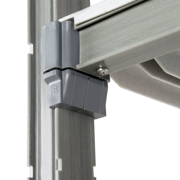 Versatility is built in to this shelving unit! The shelves can easily be adjusted in 4" increments even after the shelving unit is assembled. Plus, you can be sure of a safe and sanitary storage area since it has Camguard antimicrobial technology built in to suppress the growth of microbes between cleanings. The vented shelf plates are impervious to chemicals and moisture, making this unit easy to clean. Just take a cloth and wipe them down as you would other surfaces in your kitchen or storage room. When a more thorough cleaning is called for, you can remove the shelf plates and run them through the dishwasher! In addition, the vented shelf design promotes greater air circulation and product visibility which will come in handy in refrigerated storage applications.