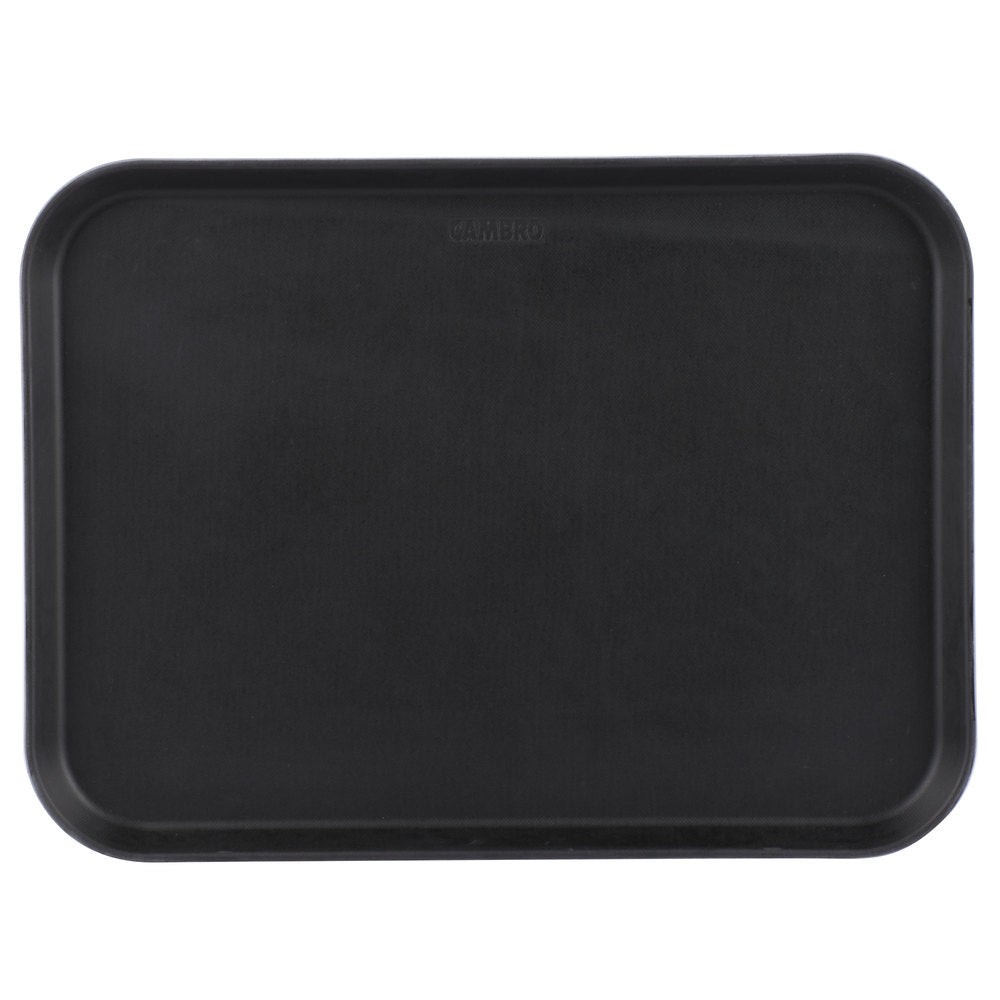 - Keep drinks and meals in place during transport with this Cambro 1520CT110 Camtread® 15" x 20" black satin rectangular serving tray! Its features a sturdy, functional design, complete with a durable fiberglass construction to handle heavy weight loads. This tray also features a thick non-skid surface that will give your wait staff peace of mind when navigating a busy restaurant with an order full of drinks and food.